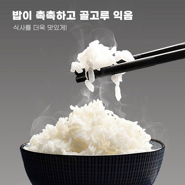 열이 안정적으로 내솥 전체에 전달되어 모든 쌀알이 고르게 익어 완벽한 밥맛을 구현합니다. 덕분에 밥이 찰지고 부드러우며 쌀 본연의 단맛을 그대로 살릴 수 있습니다. 항상 향긋하고 고슬고슬하며 마르거나 질지 않은 맛있는 밥을 즐길 수 있어 가족 모두가 만족하는 식사를 제공합니다.이것이 바로 매 끼니를 훌륭한 식사 경험으로 바꾸는 비결입니다.